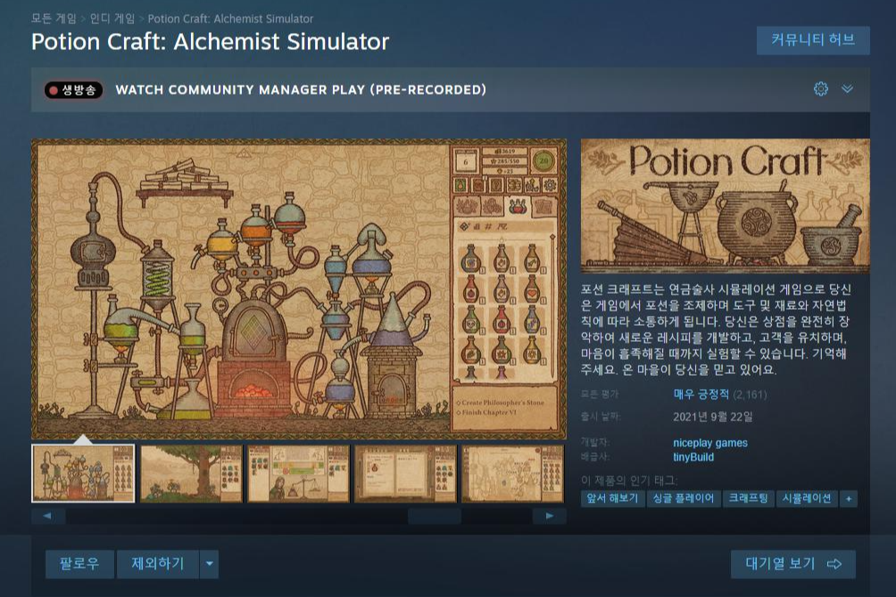 포션 크래프트라는 스팀 신작게임이 나왔다(아직은 얼리억세스 단계)